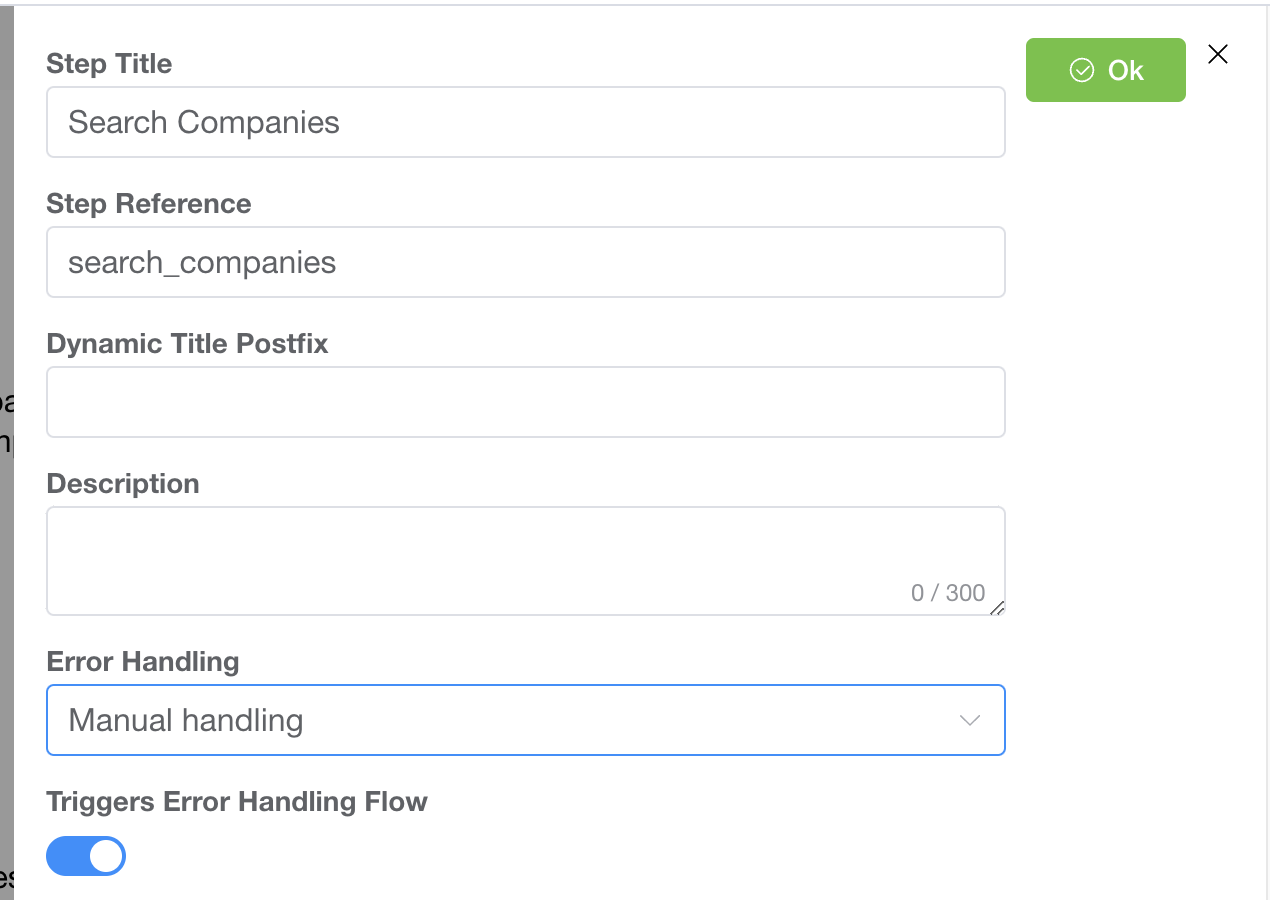 When the setting is ON the **output of the Step** will be available in the Error Handling Flow.