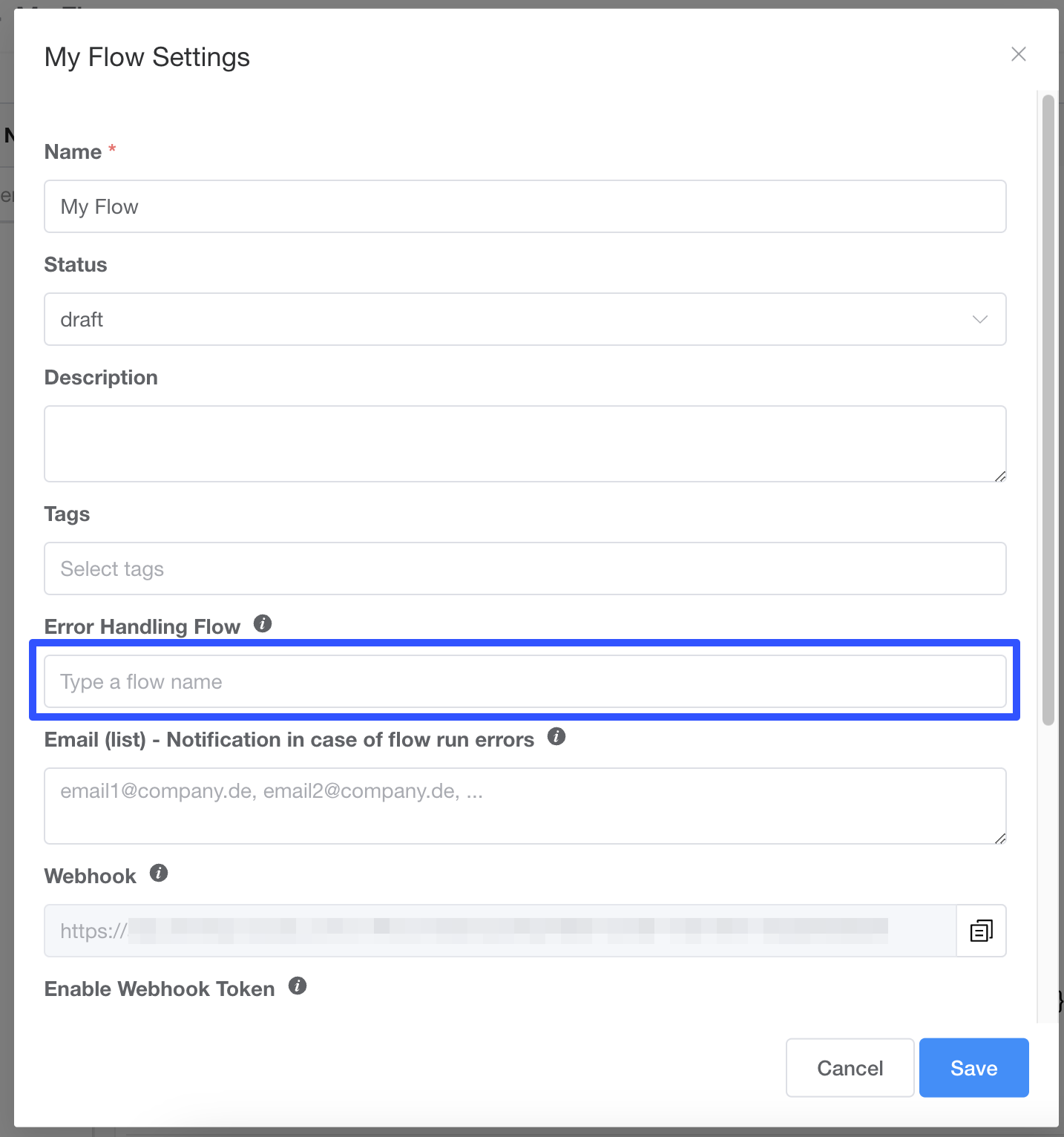 This setting is only displayed if an Error Handling Flow is selected for the Flow.