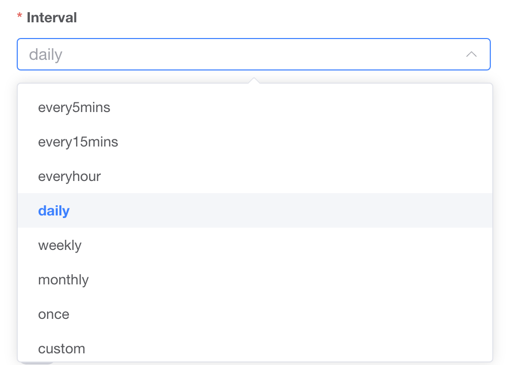 <figure><img src="https://291121471-files.gitbook.io/~/files/v0/b/gitbook-x-prod.appspot.com/o/spaces%2F-McrRFZHYH27bqKzOVDd%2Fuploads%2FrXcO7oXQEKyYB8OOwfHo%2Fimage.png?alt=media&#x26;token=5e77357e-6d94-44ad-b09f-fa5b904dc5a9" alt="" width="563"><figcaption><p>Interval options</p></figcaption></figure>