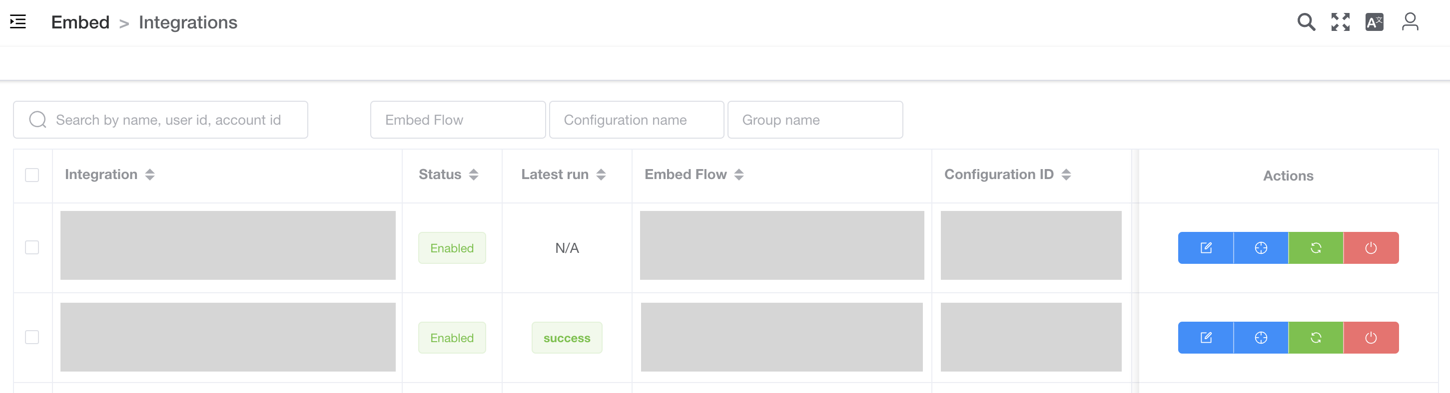 Under the submenu Embed, you have an overview of all Integrations enabled by the end users for all Embed configurations you have.