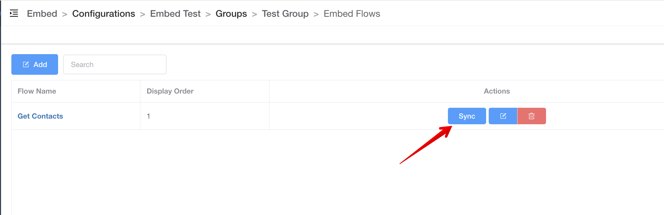 * Once you sync your Flow changes it will immediately apply to all existing Flows and all future Flows created via your Embed.